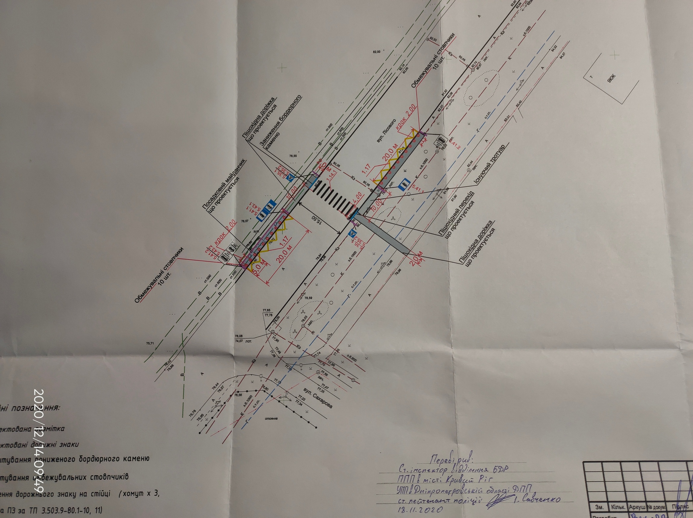 10. Проект рішення від 14.12.2020: Про затвердження схеми організації дорожнього руху по влаштуванню нерегульованого пішохідного переходу на автодорозі вулиці Лісового, біля зупинки громадського транспорту «вул. Лісового» в Довгинцівському районі