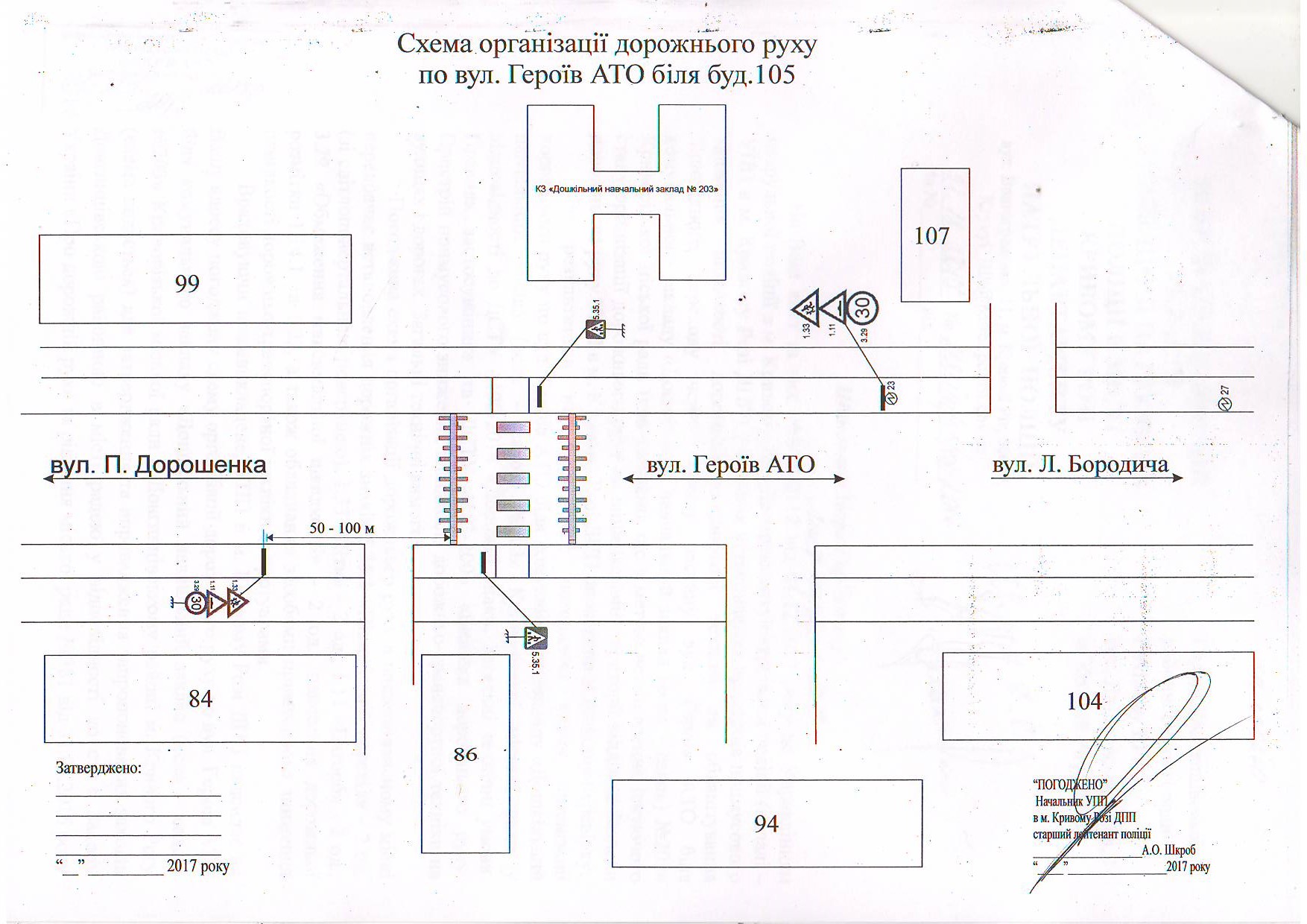 6. Проект рішення від 18.01.2018: Про затвердження схеми організації дорожнього руху по вул. Героїв АТО, 105 в Довгинцівському районі